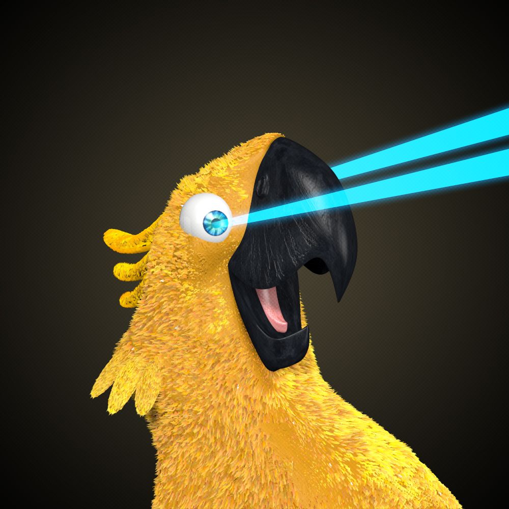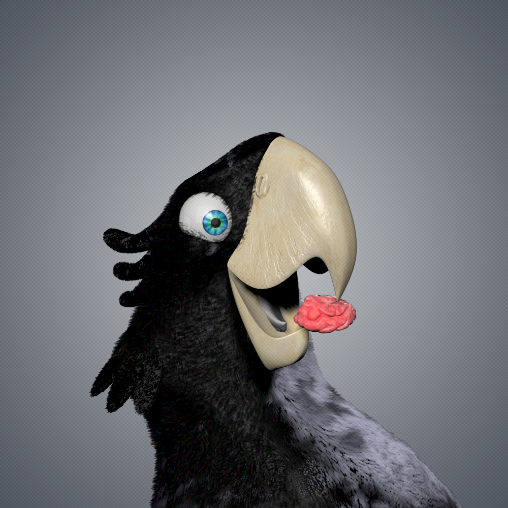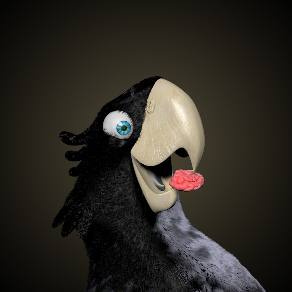 Traits: 30 in 8 categories (carrying object, wear, eyes, on head, fur color, beak color, lightning, background color).