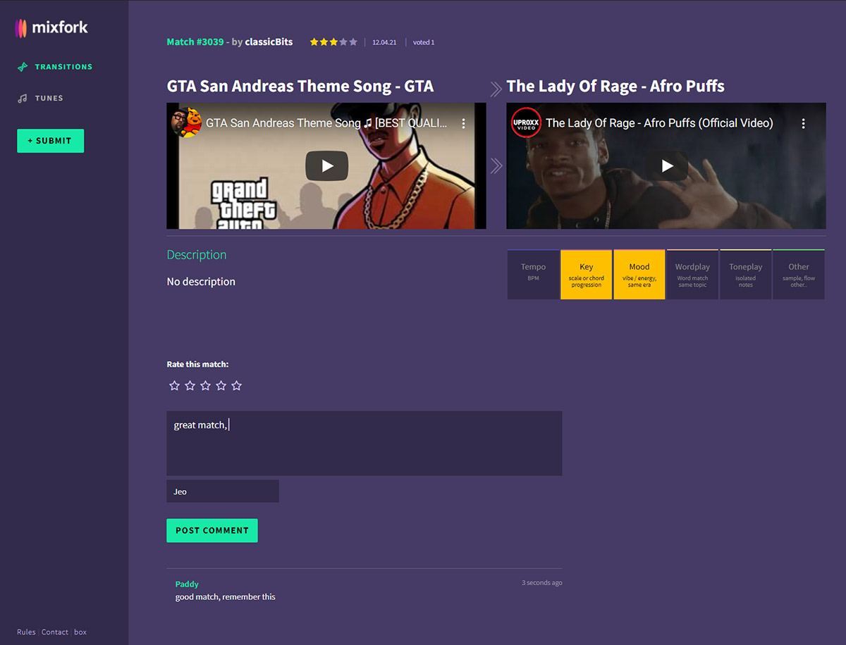 the transitions